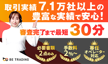 - ビートレーディングでは、審査完了から現金化まで最短2時間(※1)で対応可能